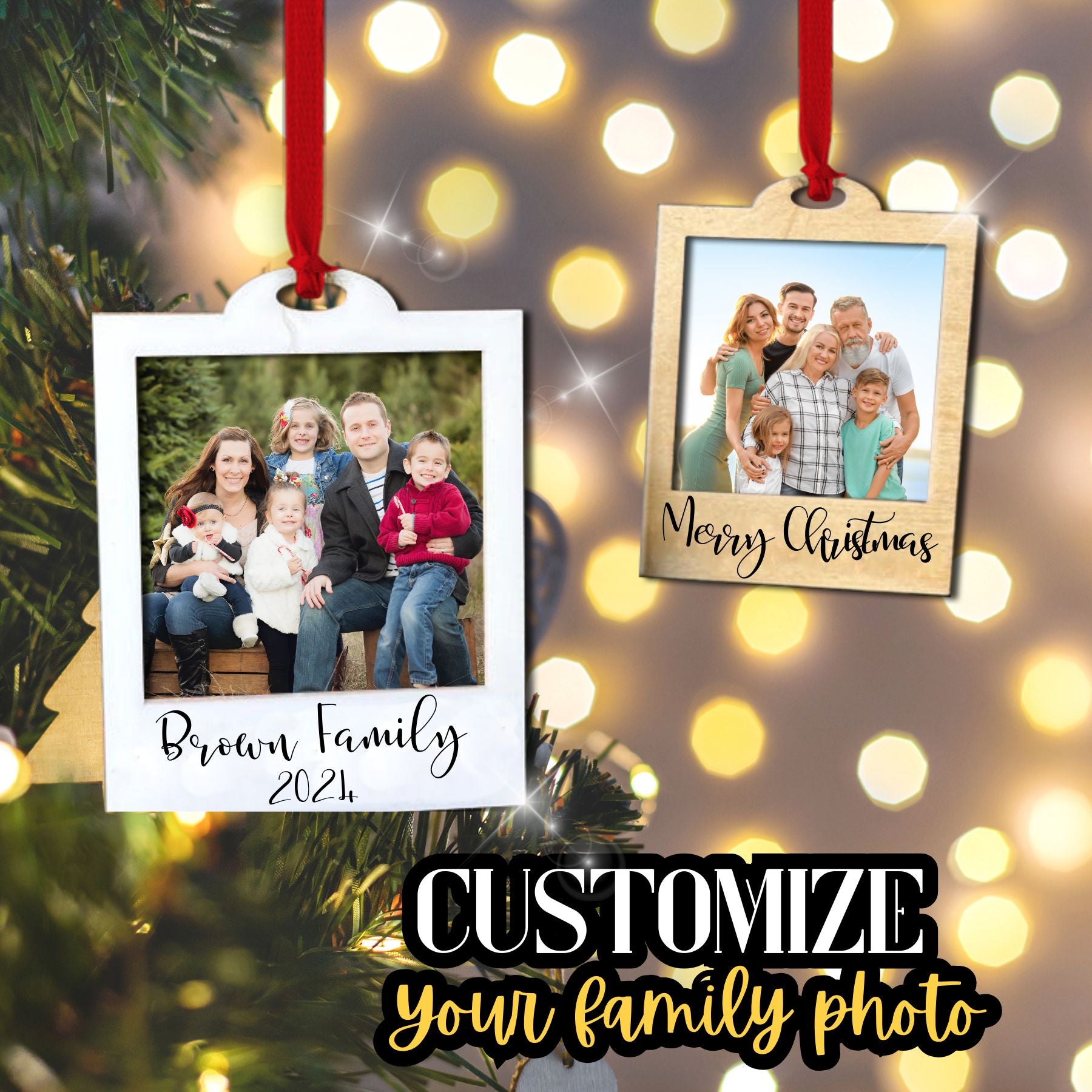 Made from natural wood, these custom, 2-sided ornaments are a heartfelt addition to your Christmas decor or as a unique holiday gift. Featuring vibrant, UV-printed designs on durable wood, each ornament brings joy that lasts for many seasons.